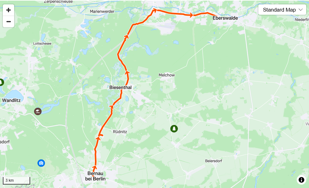 - Route: Bernau – Bunker Ladeburg – Biesenthal– Eberswalde